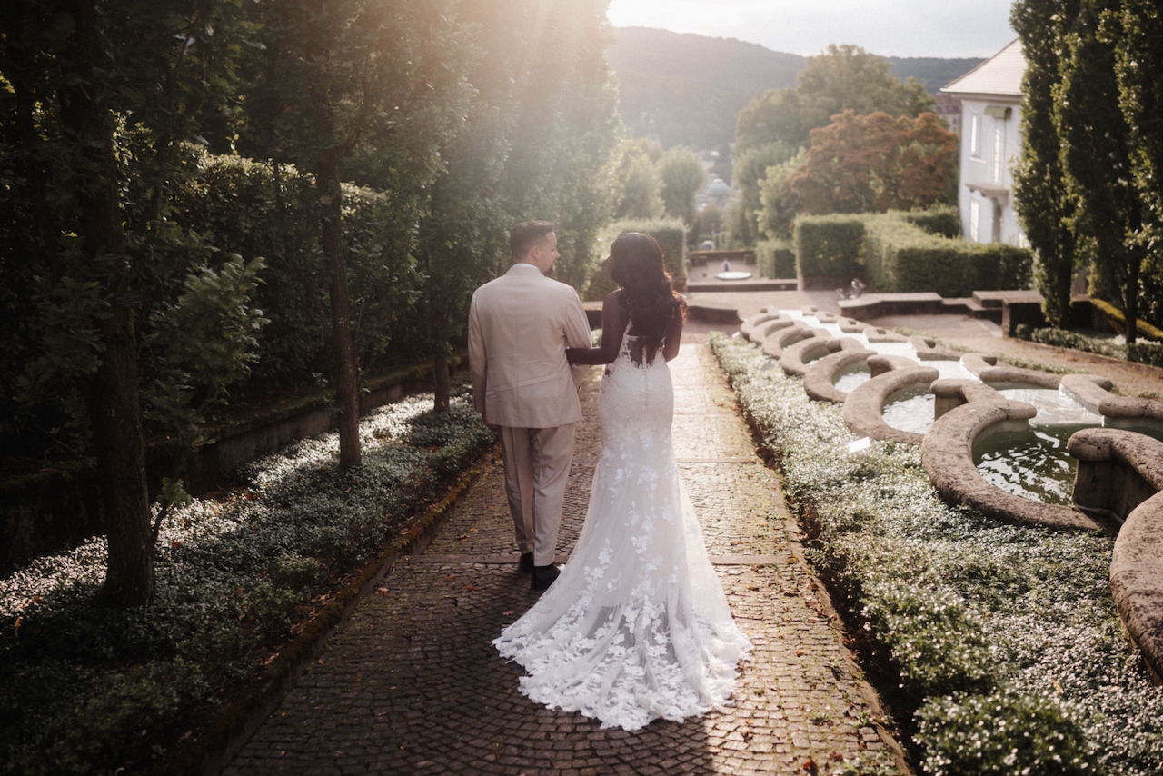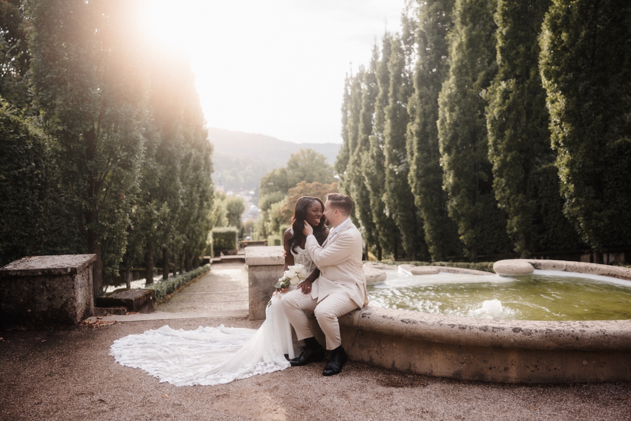 After-Wedding Magic above the Rooftops of Baden-Baden. After their beautiful wedding at Kitchen & Soul, I had the pleasure of joining Pamela and Nici for a special after-wedding shoot—this time at a historic spot high above the rooftops of Baden-Baden.